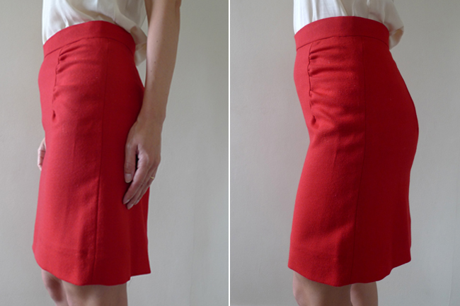 You can use any basic skirt pattern that has two darts on the front, ideally a pencil (shown here) or A-line. If you don't already have something appropriate you could use something like Simplicity 5259 or possibly New Look 6843. However, pick something where the darts are prominent, by both their position and length. Or, experiment with another shape if you like! The effect will be different but the principle is the same.
