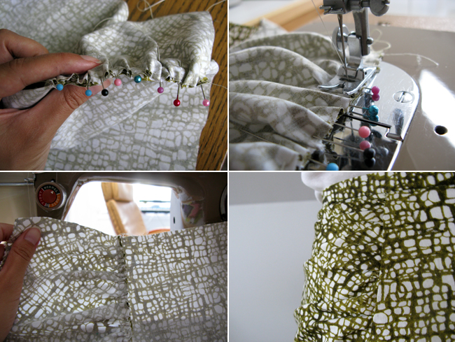 Once you've cut out the fabric, gather the long edge of the dart by hand, to match the length...
