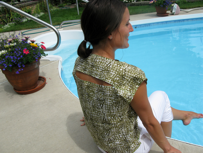 These three pleats on each hip are in place of gathers. I like the effect, the skirt is very light and the pleats unfold ever so slightly with the wind as you walk.