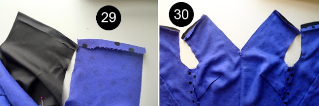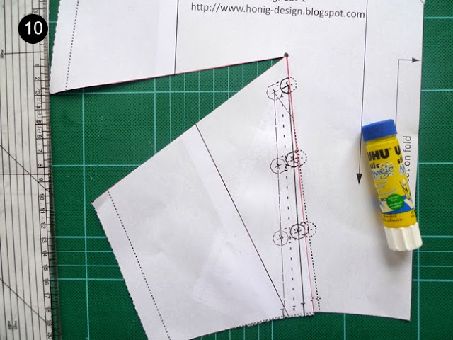 13) Close the dart by moving the lower and upper dart leg together and glueing or taping the overlap in place