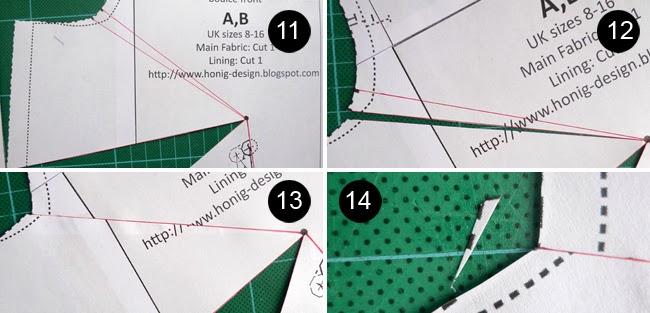 12) Slash the lower dart leg along the line you drew, to the dart apex