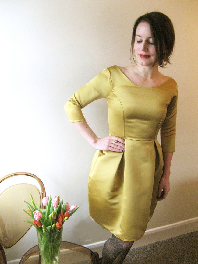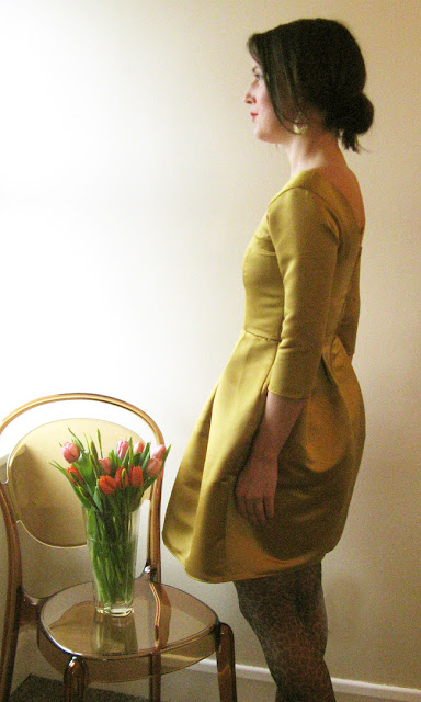 In hindsight, I'm happy I had this week-end to spend hiding from the snow and leisurely putting on the finishing touches. The duchess satin maybe wasn't the best choice of fabric (check out that little bit of puckering), but the colour seduced me.