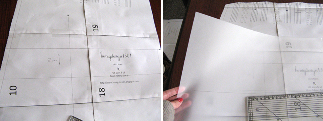 If you're changing the length of the skirt and you want to include a hem band, it's the same process, without cutting away any of the main pattern. Simply draw a 2.5cm band onto the bottom of the skirt, trace it off and add seam allowances, to the top and bottom but not the sides.