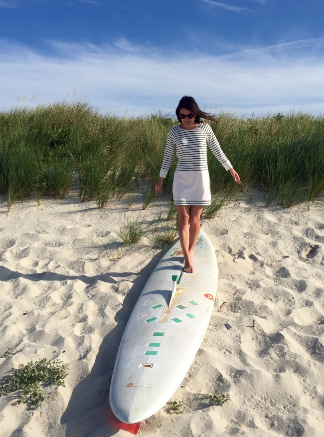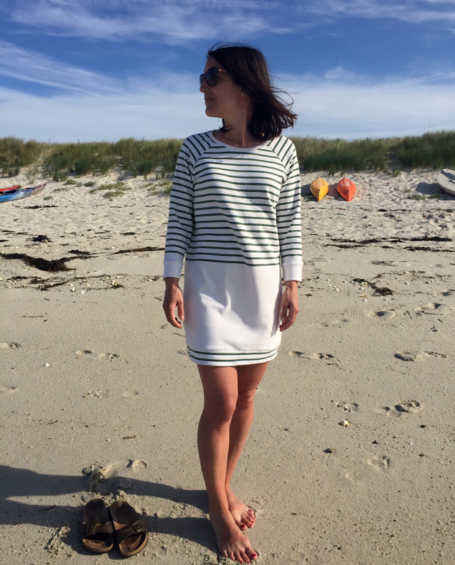Well, I love a nautical stripe almost as much as I love a dress and so I combined both with Grainline's Linden sweatshirt, lengthened into a minidress (and, critically, didn't take up too much camping gear space -- though I would have forgone the portable cooker to pack this if I had to!)