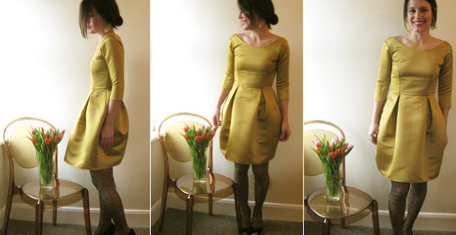 In hindsight, I'm happy I had this week-end to spend hiding from the snow and leisurely putting on the finishing touches. The duchess satin maybe wasn't the best choice of fabric (check out that little bit of puckering), but the colour seduced me.